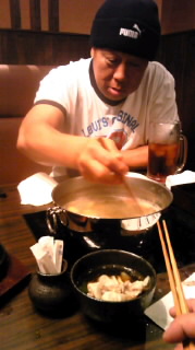 しゃぶしゃぶをよそってくれる青柳館長。館長と巡業行くのも久々でしたが、相変わらず面白くて優しい人でした。